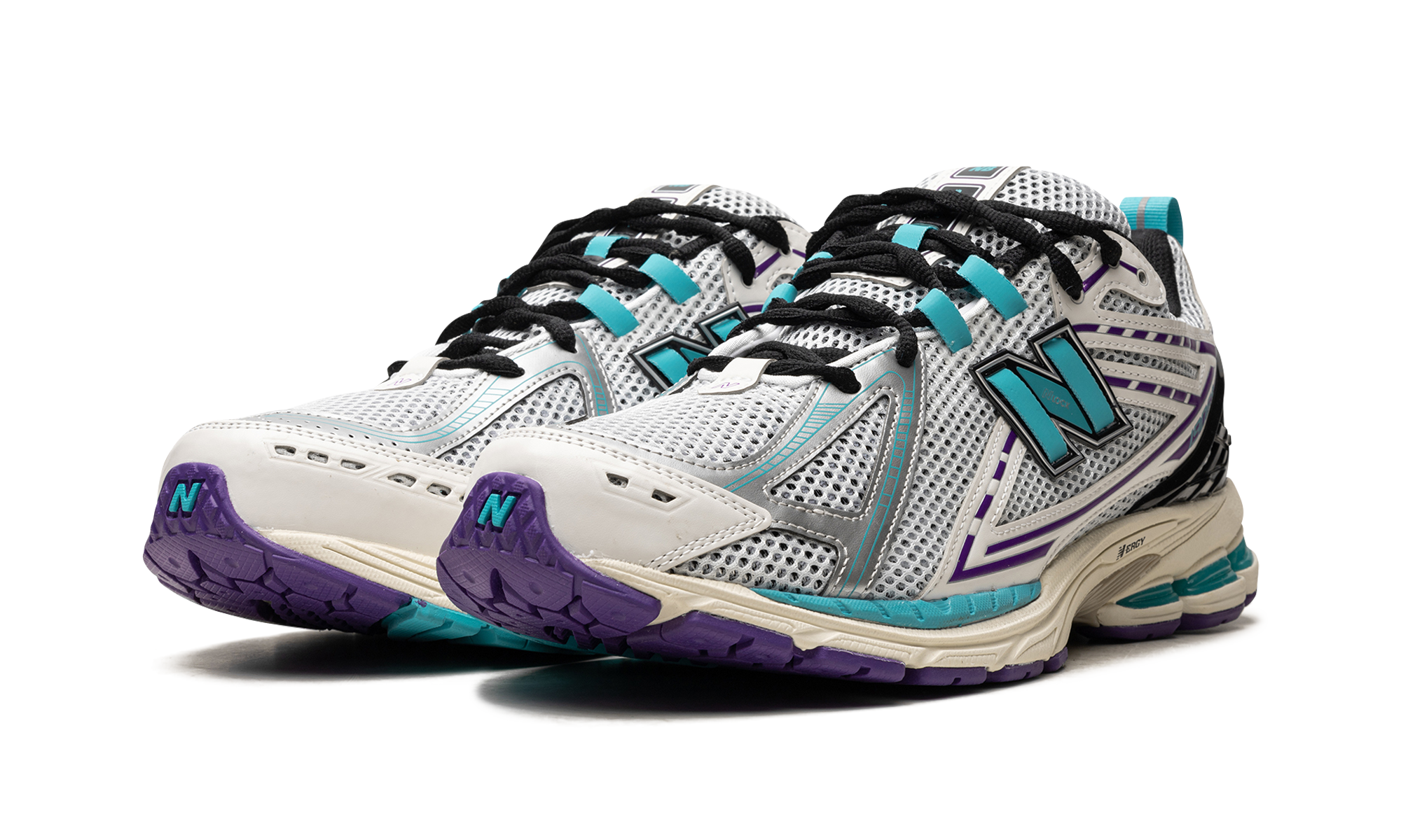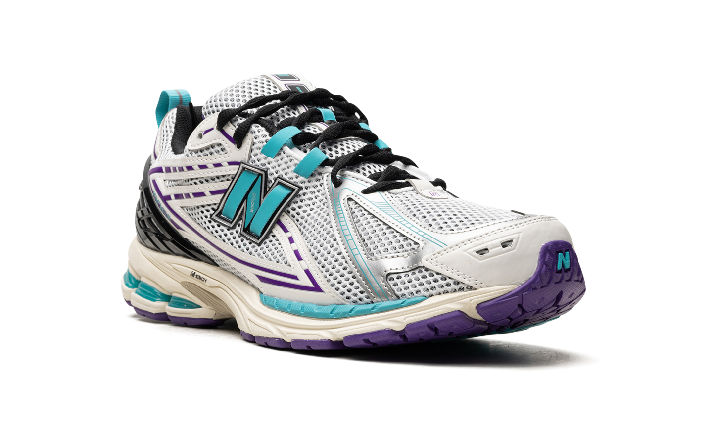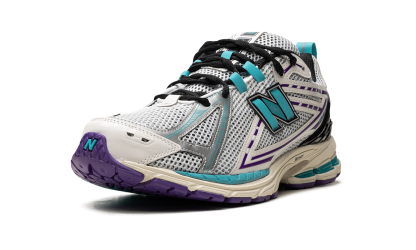 The New Balance 1906R "White/Aqua/Purple" is a colorway of the retro- running sneaker that unofficially nods to the Charlotte Hornets. While not associated with the NBA team in any way, the “WhiteAqua/Purple” calls to mind the Hornets by featuring its team uniform colors. More specifically, the shoe has an white open mesh construction with tonal synthetic overlays and teal and purple accents. A teal “N” logo can be seen on the sides. The shoe is mounted on a lightweight pre-aged, cream-colored N-ergy cushioned midsole with more teal and purple detailing. Release date: September 28, 2023